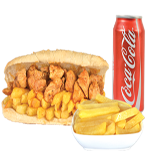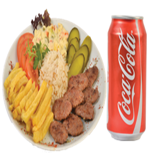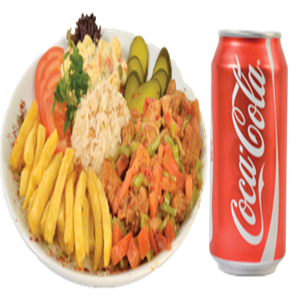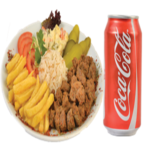 Kuş başı doğranmış Soslu Tavuk, Kızarmış Patates, Garnitür,Akdeniz yeşillik + Cola