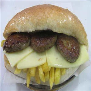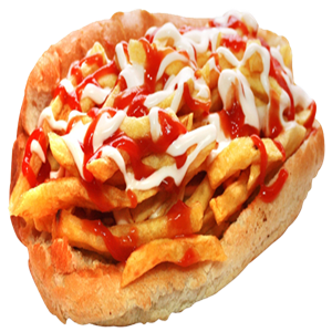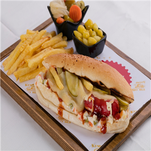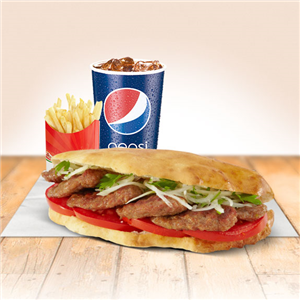 Izgara Kasap Köfte, Kaşar, Bol Patates,Ketçap, Mayonez, kornişon turşu