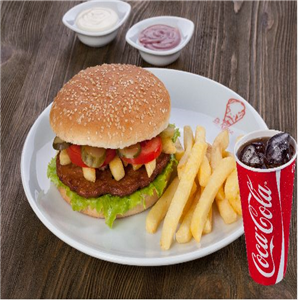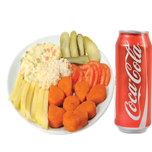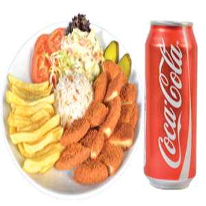 Pane Edilmiş Tavuk Piliç, Kızarmış Patates, Garnitür,Akdeniz yeşillik + Cola
